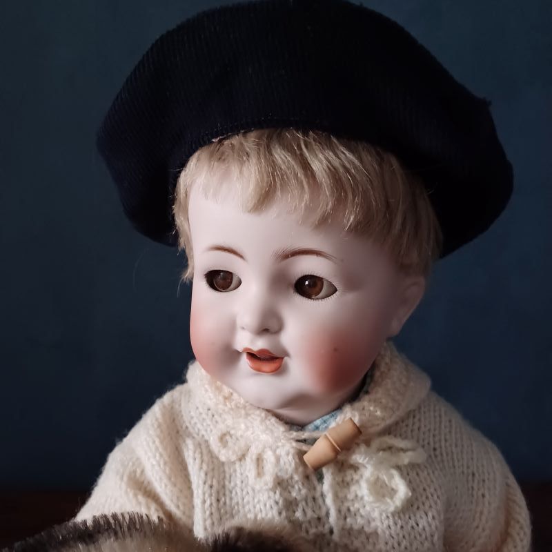 Il viendra avec son doudou "lapin" en mohair ancien qu'il ne doit pas quitter afin de garder sa petite mine réjouie.
