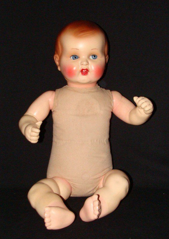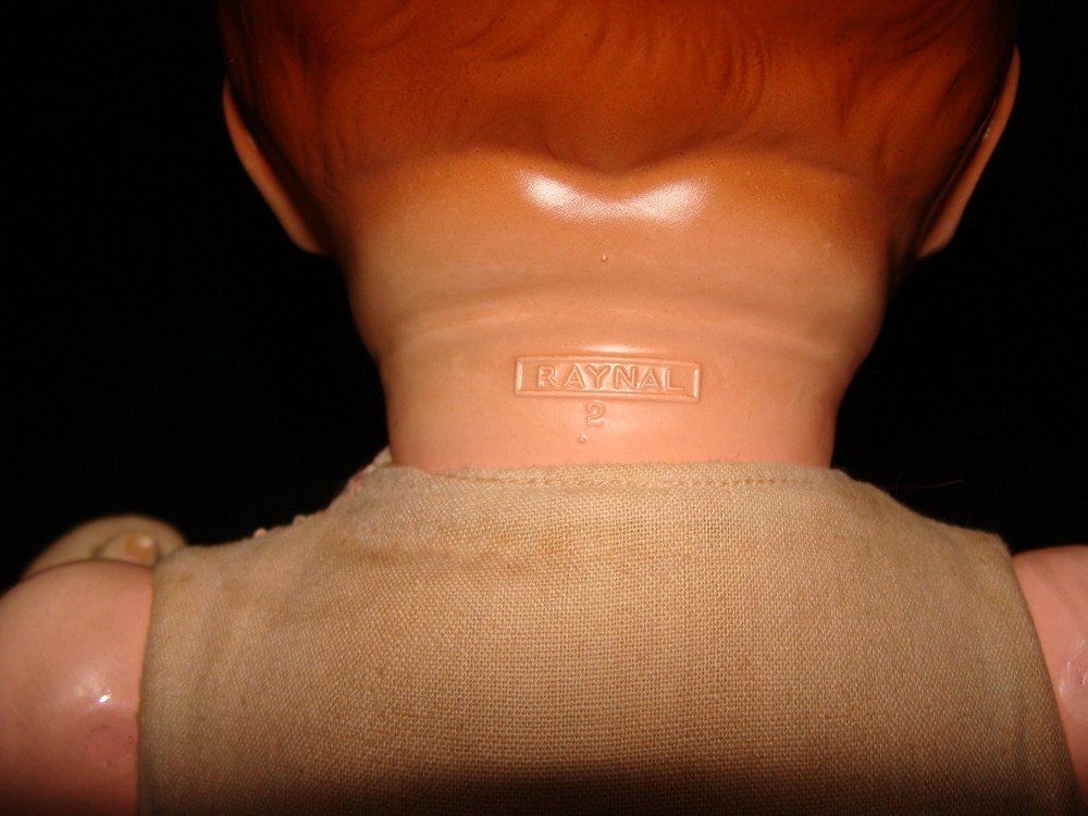 200 €40s Raynal baby doll with a fabric body and flirty glass eyes. His condition is customary with eyes with a slight squint as is often the case with Raynal baby doll.