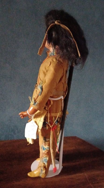 500€A rare and original Indian doll depicting a Canadian Blackfoot Indian with all his original clothing and equipment consisting of snowshoes, a lance, a case and probably two knives hanging from the waist.