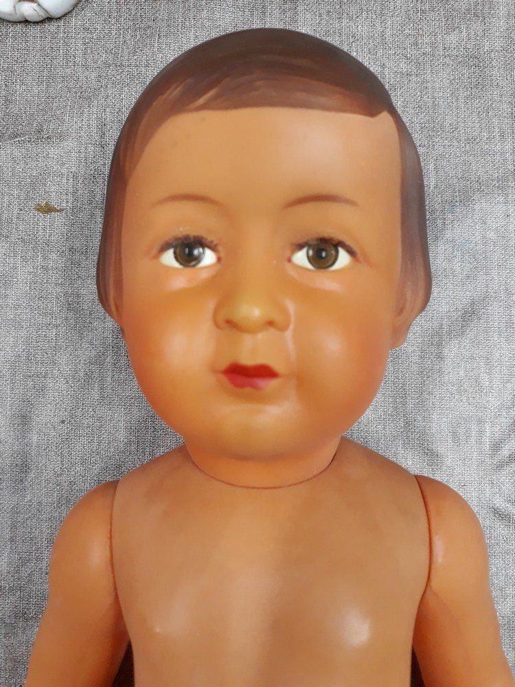 Bien que la Société Petitcollin soit née en 1860 dans la Somme, les premiers baigneurs n’apparaissent qu’en 1912. l’usine détruite pendant la première guerre mondiale repris du service en 1924 jusqu’à son apogée dans les années 30. La fabrique Petitcollin est certainement la marque la plus connue en France et à l’étranger. Elle produit du celluloïd jusque dans les années 50 et passe ensuite au polyétilène. La fabrication continue encore aujourd’hui ce qui fait de Petitcollin une des plus ancienne marque de jouets français. On trouve actuellement chez eux des poupées en plastique, des rééditions de poupées anciennes dont trés connue Françoise de Modes et travaux dont ils ont racheté les moules à la société SNF dans les années 50. leur collection actuelle comporte également de trés jolies poupées vinyles.