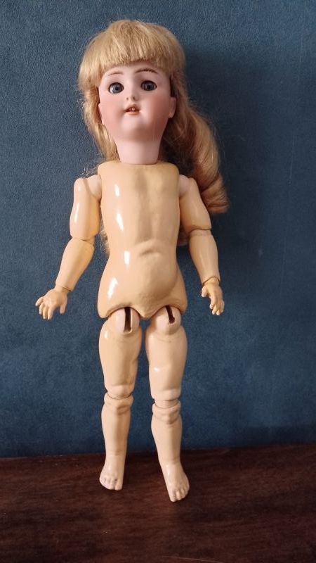 Très jolie poupée allemande en excellent état d'origine datant de +33 679302188, blonde avec des yeux dormeurs est vêtue dans un style romantique, d'une jolie robe en dentelle restaurée pour elle et d'un chapeau ancien. Les chaussures en cuir sont faites sur-mesure à l'atelier.